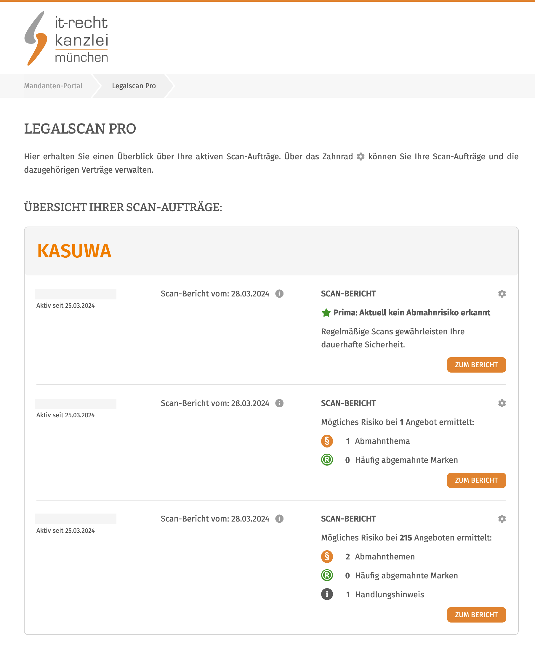 von LegalScan Pro direkt im Mandantenportal beauftragen. Einmal gebucht, können Sie Ihre