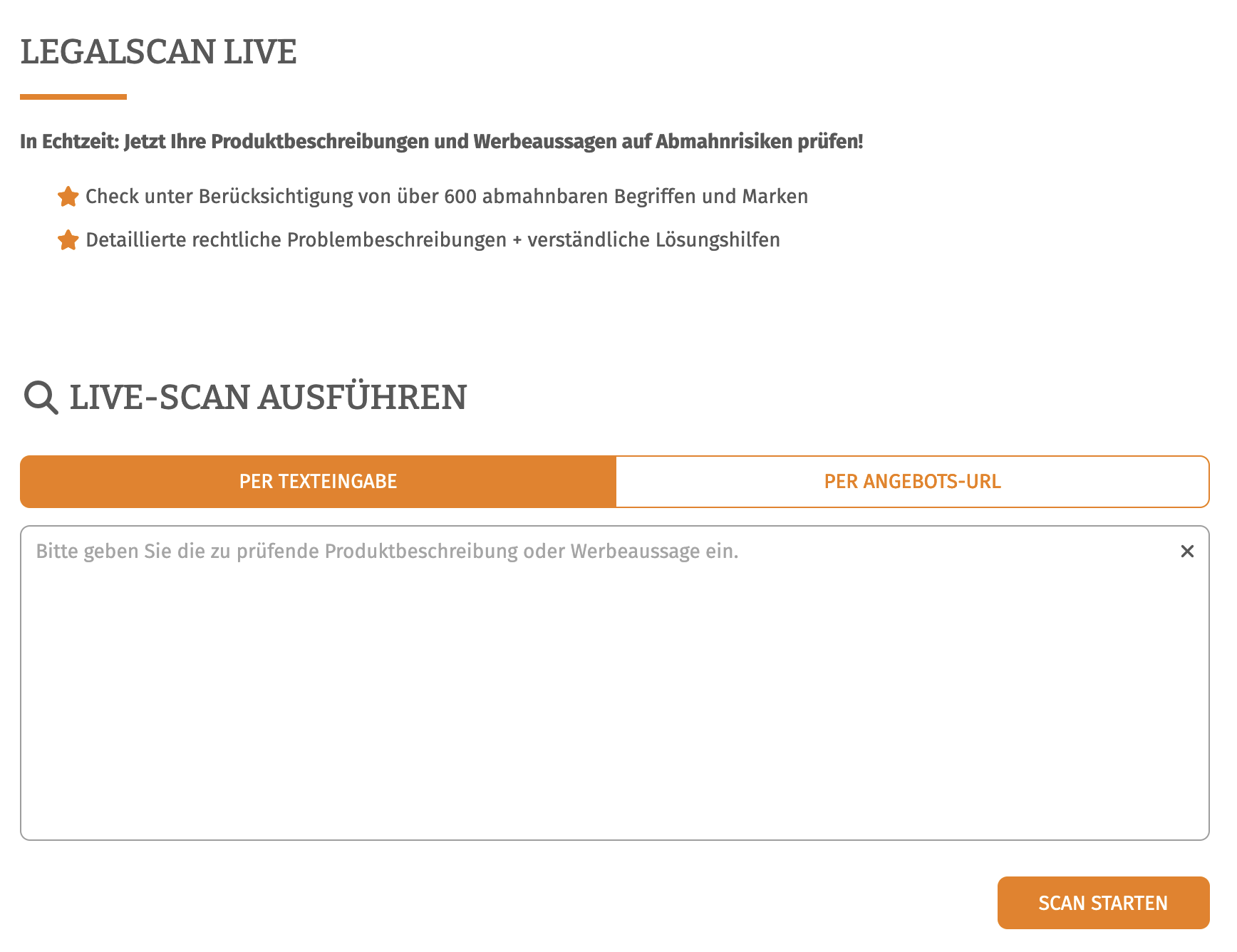 bestehender Scan-Aufträge Werbetexte und Produktbeschreibungen auf Ihren Präsenzen präventiv